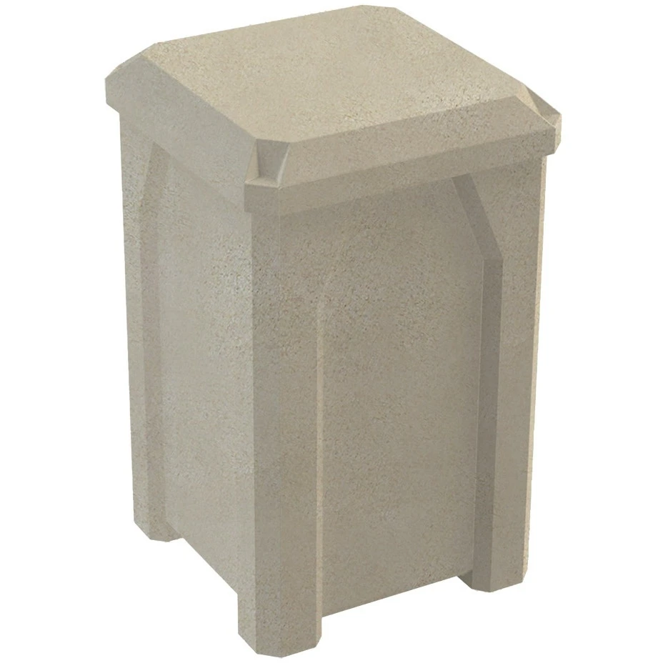 The trash or recycling can is made from 100% recycled polyethylene making it eco-friendly and durable enough for outdoor and indoor locations such as hallways, restrooms, or facilities where dust is accumulating during product assembly. It is heavy enough that it will not easily tip over, and the walls are smooth and easy to clean. The beige granite square trash receptacle is unobtrusive in color and will not obstruct the scenery in which the receptacle is placed.