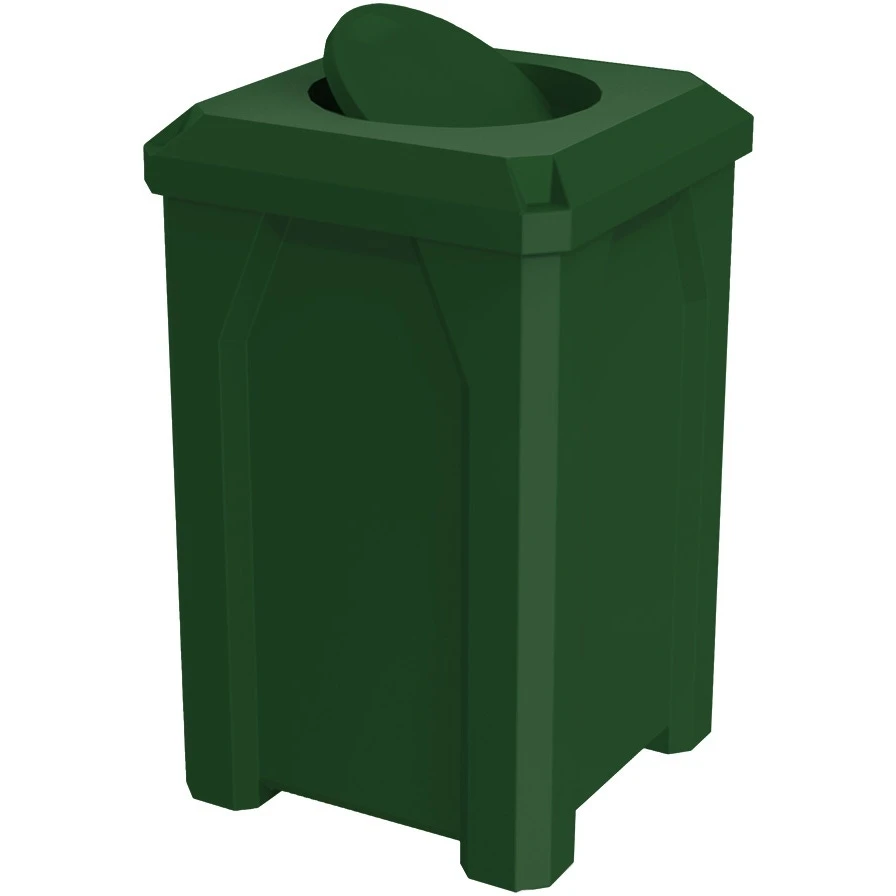 This receptacle is tall and narrow to make it space efficient for tight spaces such as restrooms with diaper changing stations or hallways. The liner makes this trash can economic as it is removable and can replace the need for costly garbage bags. Made with heavy-duty, fade-resistant polyethylene, this unit will not chip, rust, or peel making it durable for indoor or outdoor use. The green color will not obstruct the scenery in outdoor locations and blends in nicely for indoor venues as well.