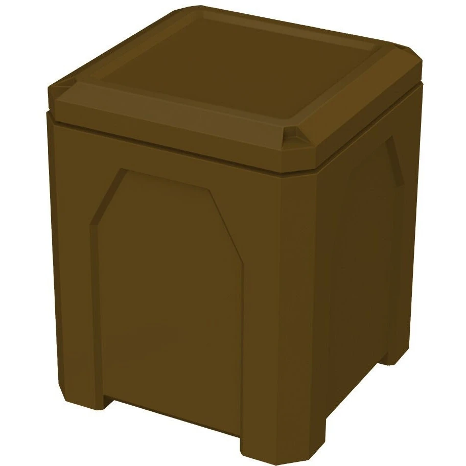 The trash or recycling can is made from 100% recycled polyethylene making it eco-friendly and durable enough for outdoor and indoor locations such as shopping centers, golf courses, playgrounds, commercial centers, warehouses and more. It is heavy enough that it will not easily tip over, and the walls are smooth and easy to clean. The brown color is dark enough to hide dirt and grime to keep an attractive view even between cleanings.