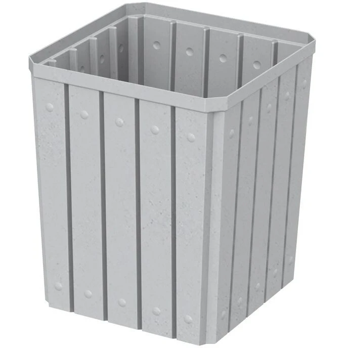 The trash receptacle is made with durable and heavy-duty high-density polyethylene (HDPE) that is chip, peel and rust resistant. Made from 100% recycled materials, the unit is also environmentally-friendly. Slatted sides will deter vandalism and offer a classic aesthetic similar to wooden slats often seen on the sidewalk of city streets, near park benches and in commercial centers like shopping malls or supermarkets. The trash can is a fade-resistant light granite color that will not obstruct the scenery in outdoor locations such as national parks beaches or golf courses and blends in nicely for indoor venues as well.