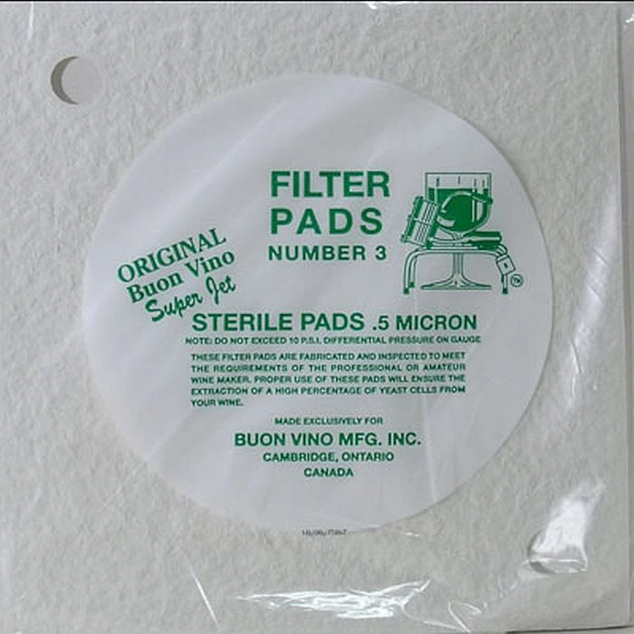 - The #3 pads are Sterile Pads (0.5 Micron) – very tight pads that remove very small particulate in your wine. We strongly recommend that you filter with the #2 pad first before filtering with the # 3 pads.