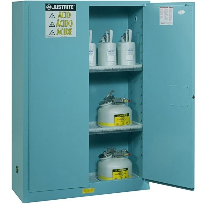 - Designed to safely store your corrosives and acids.