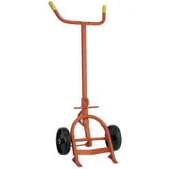 - Machined steel load wheels behind nose prongs help ease the lifting of the drum.